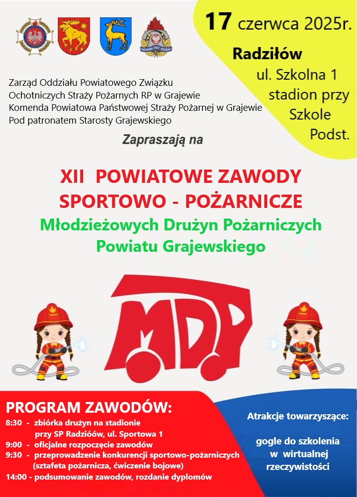 Aktualności XII POWIATOWE ZAWODY SPORTOWO-POŻARNICZE Młodzieżowych Drużyn Pożarniczych Powiatu Grajewskiego 11 czerwca 2025 Marta Bieńkowska Wyświetlenia 154