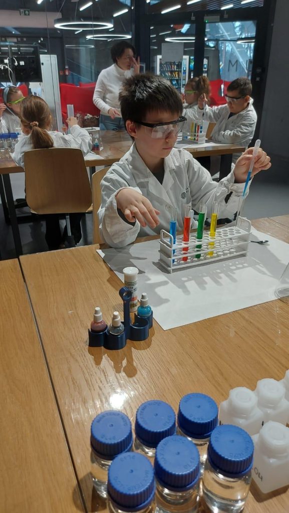 27 stycznia wybraliśmy się do Epi-Centrum Nauki w Białymstoku, gdzie mogliśmy jednocześnie bawić się i eksperymentować. Na początku wizyty wzięliśmy udział w warsztatach laboratoryjnych, podczas których, pod okiem ekspertów, przeprowadziliśmy niesamowite doświadczenia chemiczne. Dowiedzieliśmy się, jak bezpiecznie pracować w laboratorium oraz jak prawidłowo posługiwać się sprzętem i odczynnikami. Samodzielne wykonywanie doświadczeń było bardzo ciekawe i dostarczyło nam wielu nowych wiadomości.
