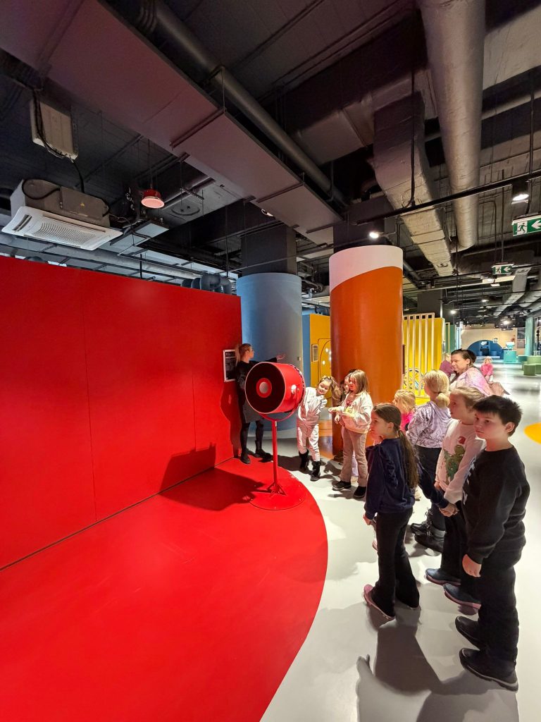 Po zakończonych warsztatach przenieśliśmy się na wystawę główną, gdzie czekało na nas wiele interaktywnych stanowisk. Mogliśmy tam samodzielnie odkrywać zagadnienia związane m.in. z optyką, transportem, telekomunikacja, medycyną, automatyką, robotyką i mechaniką. Każda ze stref wyróżniała się ciekawą scenografią, nawiązującą do omawianej tematyki, co dodatkowo uatrakcyjniło zwiedzanie.