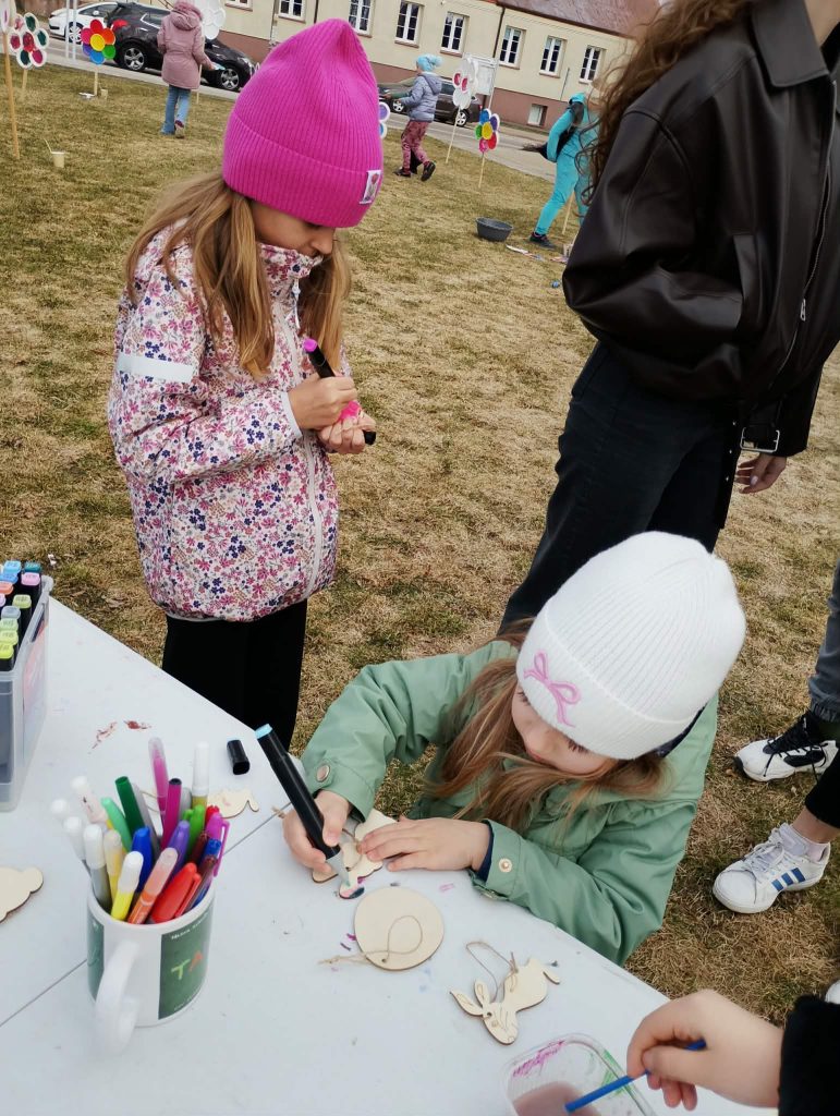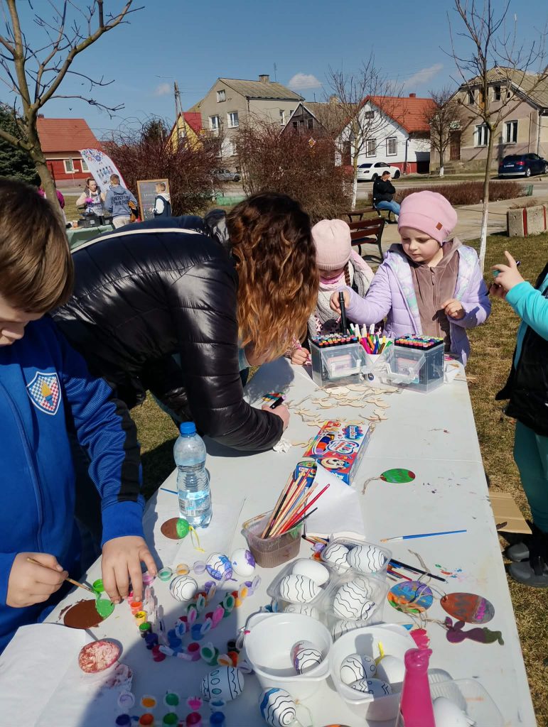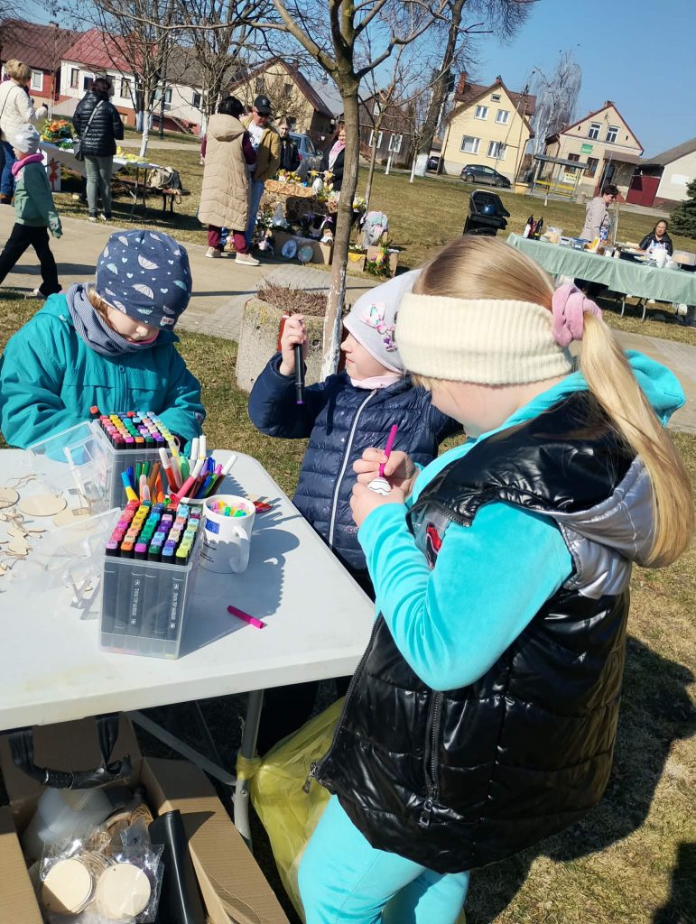 Podczas Jarmarku Wielkanocnego mieszkańcy i goście mogli poczuć wyjątkową atmosferę nadchodzących Świąt. Na stoiskach czekały piękne ozdoby wielkanocne, kolorowe zabawki oraz ręcznie plecione koszyki oraz tradycyjne palmy wielkanocne, które zachwycały swoją starannością i bogactwem barw. Nie zabrakło również swojskich potraw przygotowanych przez Koło Gospodyń Wiejskich z Kieljan. Aromatyczne, domowe specjały i wypieki przyciągały nie tylko zapachem, ale i wyjątkowym smakiem. Najmłodsi uczestnicy także mieli swoje miejsce do działania i zabawy. Dzieci z radością tworzyły własną, barwną łąkę kwietną oraz własnoręcznie przygotowywały wielkanocne jajeczka i zajączki, rozwijając wyobraźnię i zdolności plastyczne.