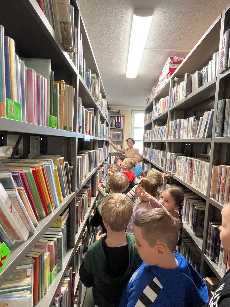 Podczas wizyty dzieci miały okazję poznać, jak funkcjonuje biblioteka „od środka”. Dowiedziały się, na czym polega praca bibliotekarza, jak uporządkowane są książki oraz zajrzały w różne zakamarki naszej placówki.