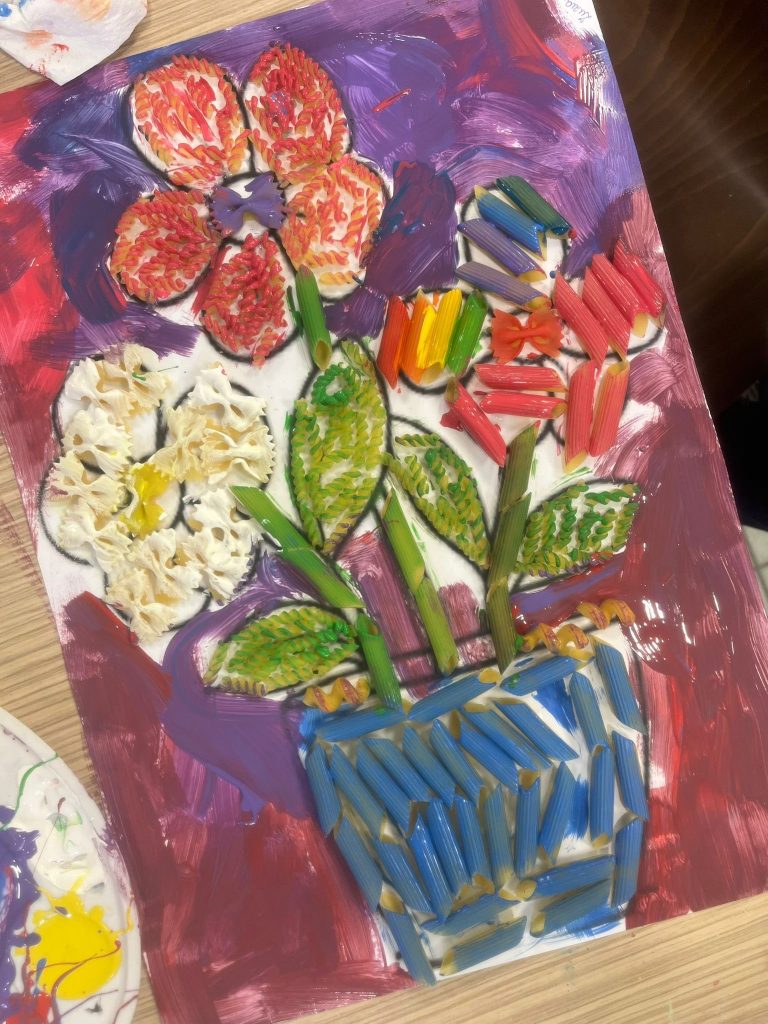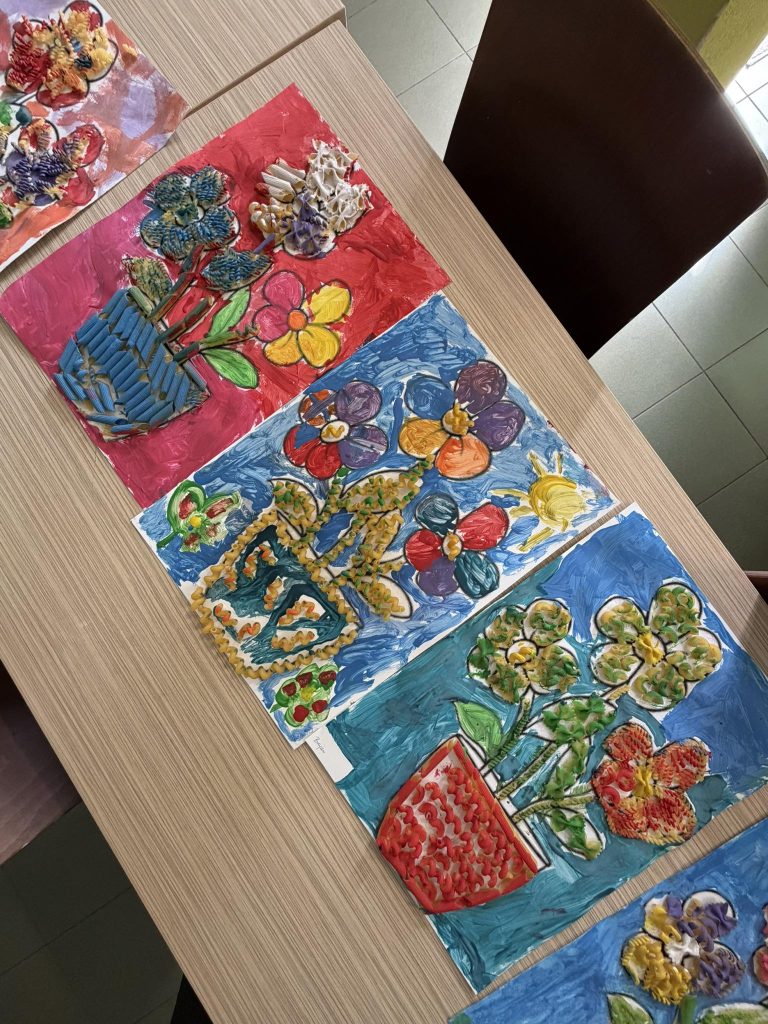 Nie zabrakło też części kreatywnej! Wspólnie czytaliśmy książeczkę „A kuku! Wiosna w lesie”, a następnie dzieci wykonały piękne prace plastyczne – wiosenne kwiaty