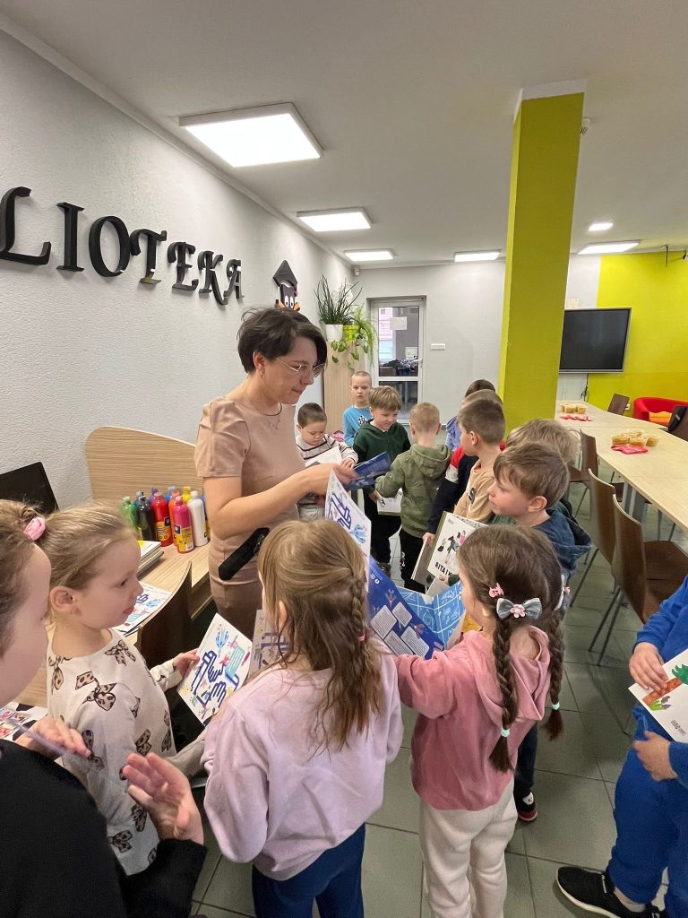 W trakcie spotkania dzieci wzięły również udział w programie Mała książka – wielki człowiek, realizowanym w naszej bibliotece.