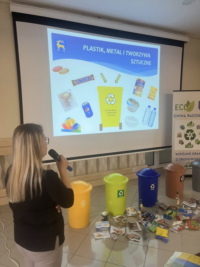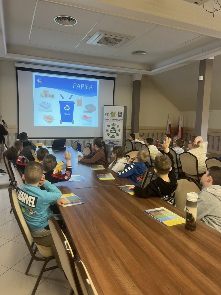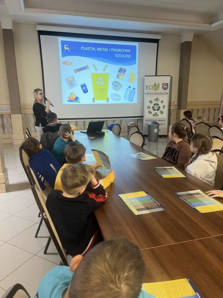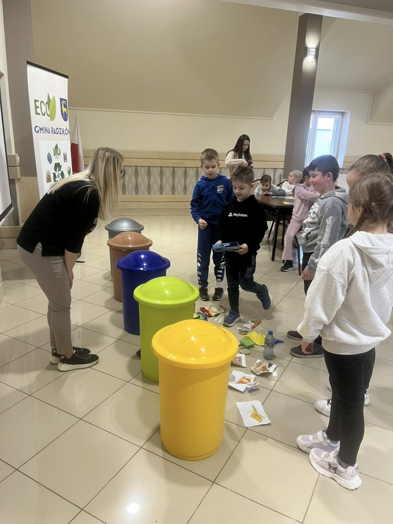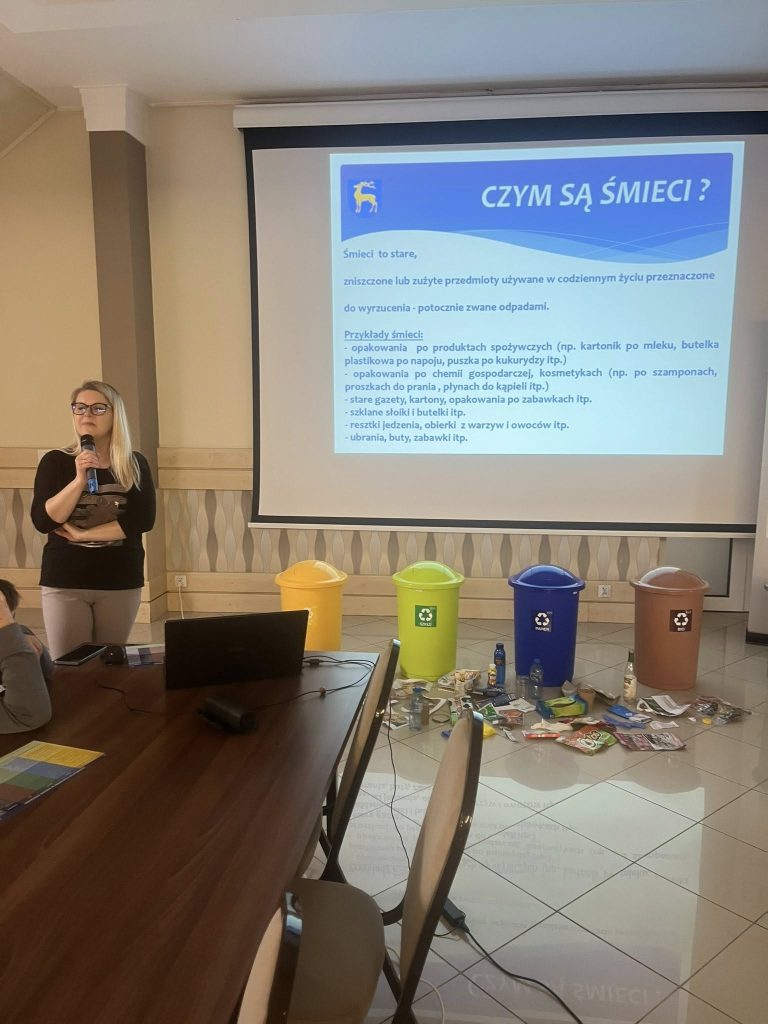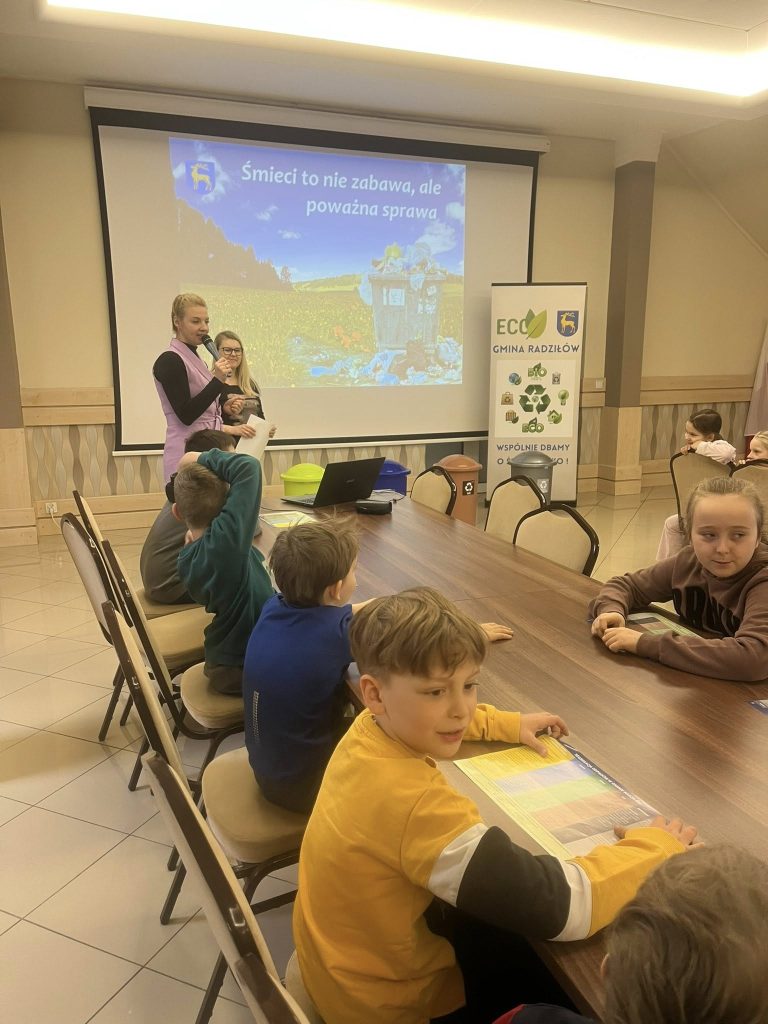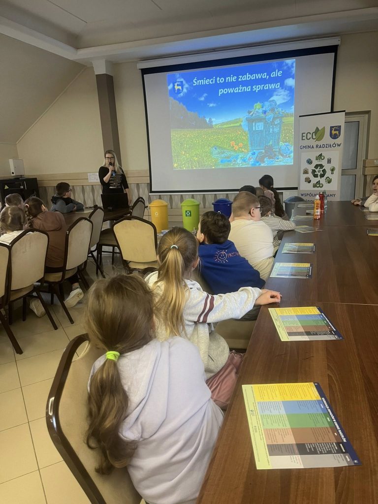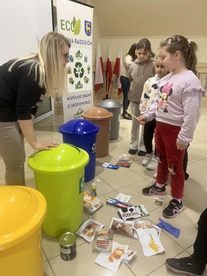 Podczas spotkania mieliśmy przyjemność gościć Panią Annę Borowską-Wróbel z Urzędu Gminy Radziłów, która w bardzo ciekawy i przystępny sposób podzieliła się swoją wiedzą na temat ekologii. Przeprowadziła inspirujący wykład oraz praktyczny pokaz dotyczący prawidłowej segregacji śmieci, dzięki czemu dzieci mogły lepiej zrozumieć, jak ważna jest troska o środowisko i jakie codzienne działania mają na nie realny wpływ .