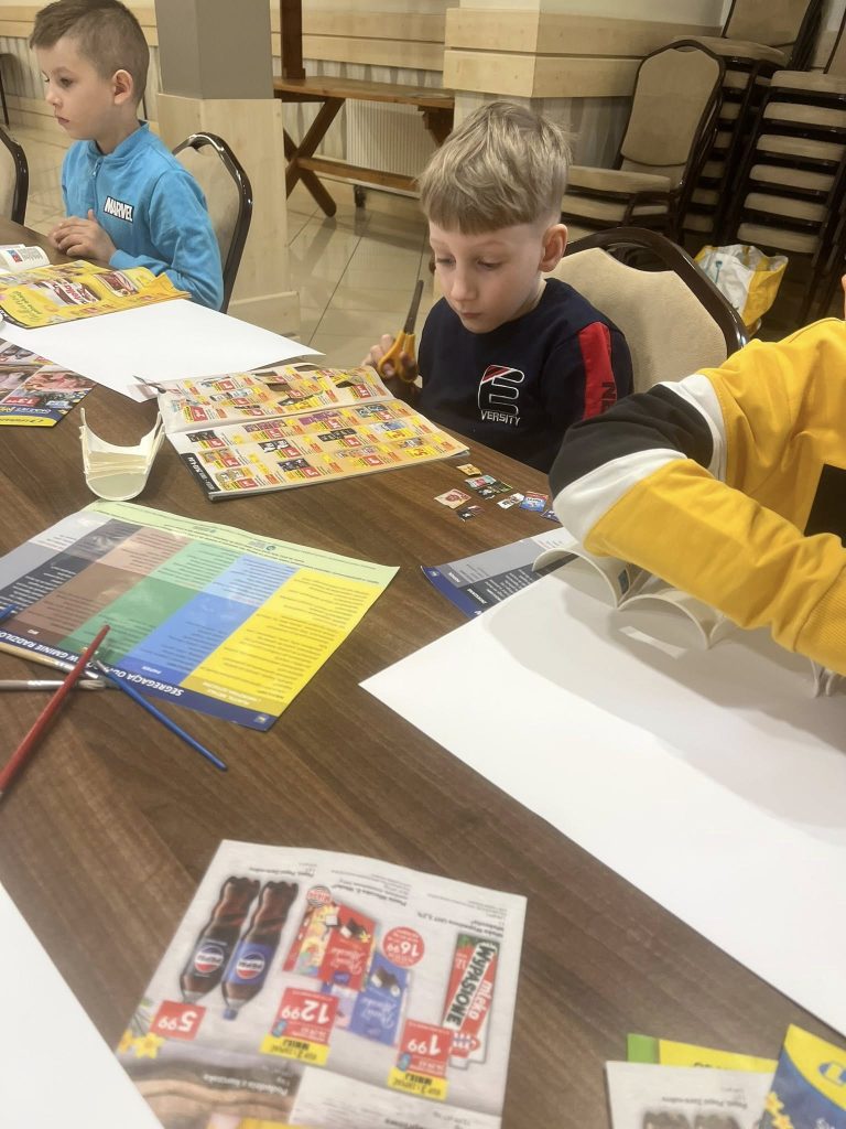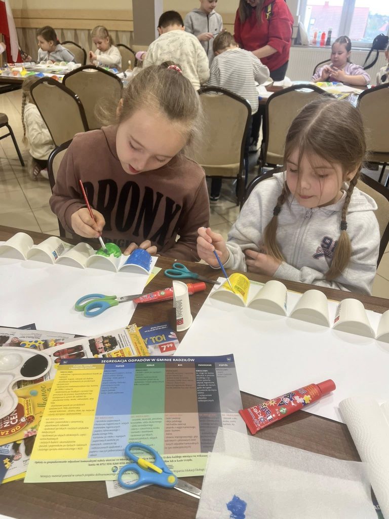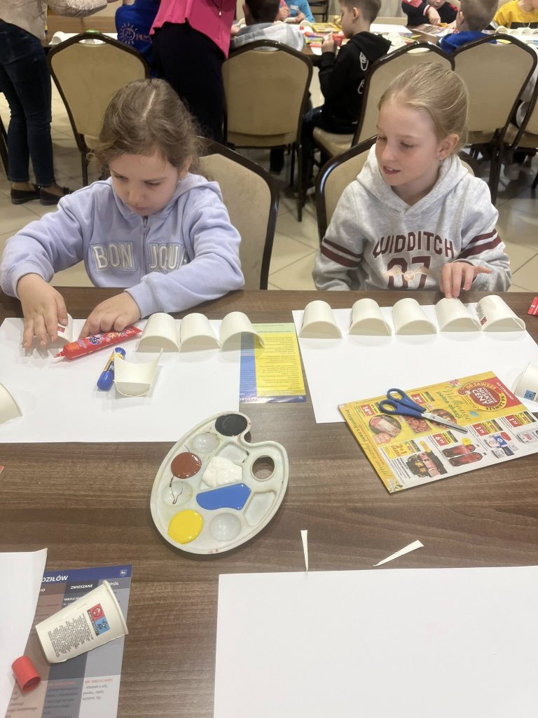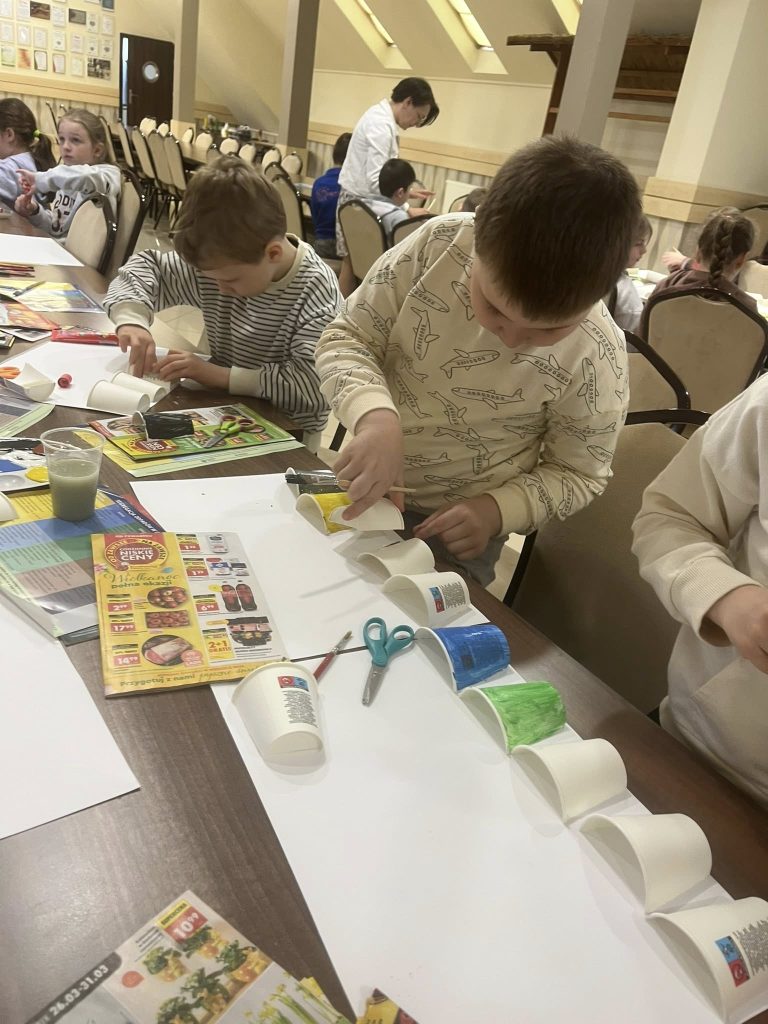 Aby utrwalić zdobyte informacje, uczestnicy zajęć wzięli udział w części warsztatowej, podczas której wykonali niezwykle kreatywne prace manualne. Dzieci wykazały się ogromnym zaangażowaniem, pomysłowością oraz chęcią do działania – z wielkim entuzjazmem tworzyły swoje prace i dzieliły się swoimi pomysłami.